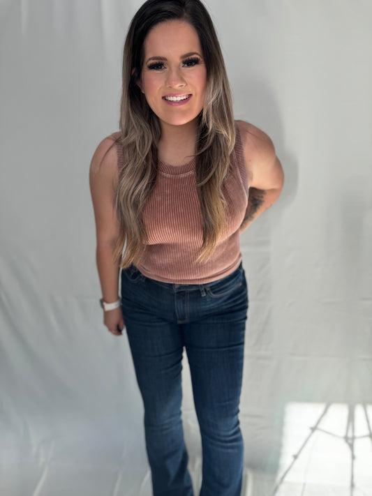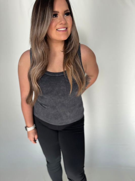 2-Way Stone Washed Ribbed Seamless Tank Top - 14 Colors!!