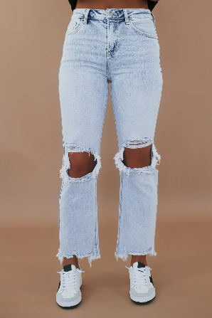 Judy Blue The Heidi Medium Wash Straight Jeans with Destroy Detail