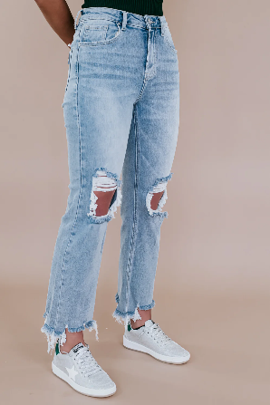 Jolene Risen High Rise Straight Crop Jeans in Light Wash