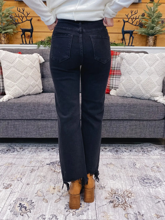 Jolene Risen High Rise Straight Crop Jeans in Black Wash