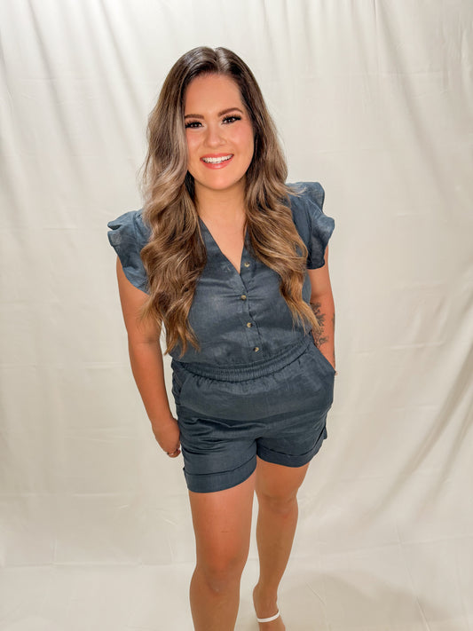 Always Classy Ruffle Sleeve Linen Romper - 2 Colors!