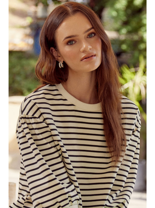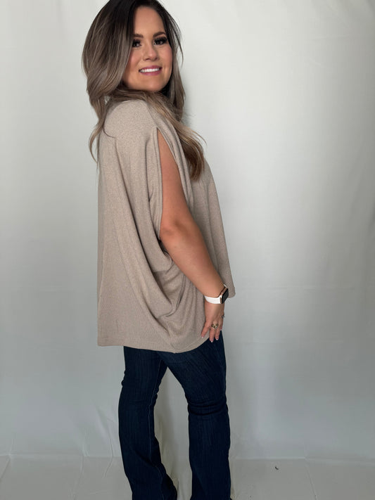Oversized Knit Boxy Cut Top with Double Stitch & Cut Edge
